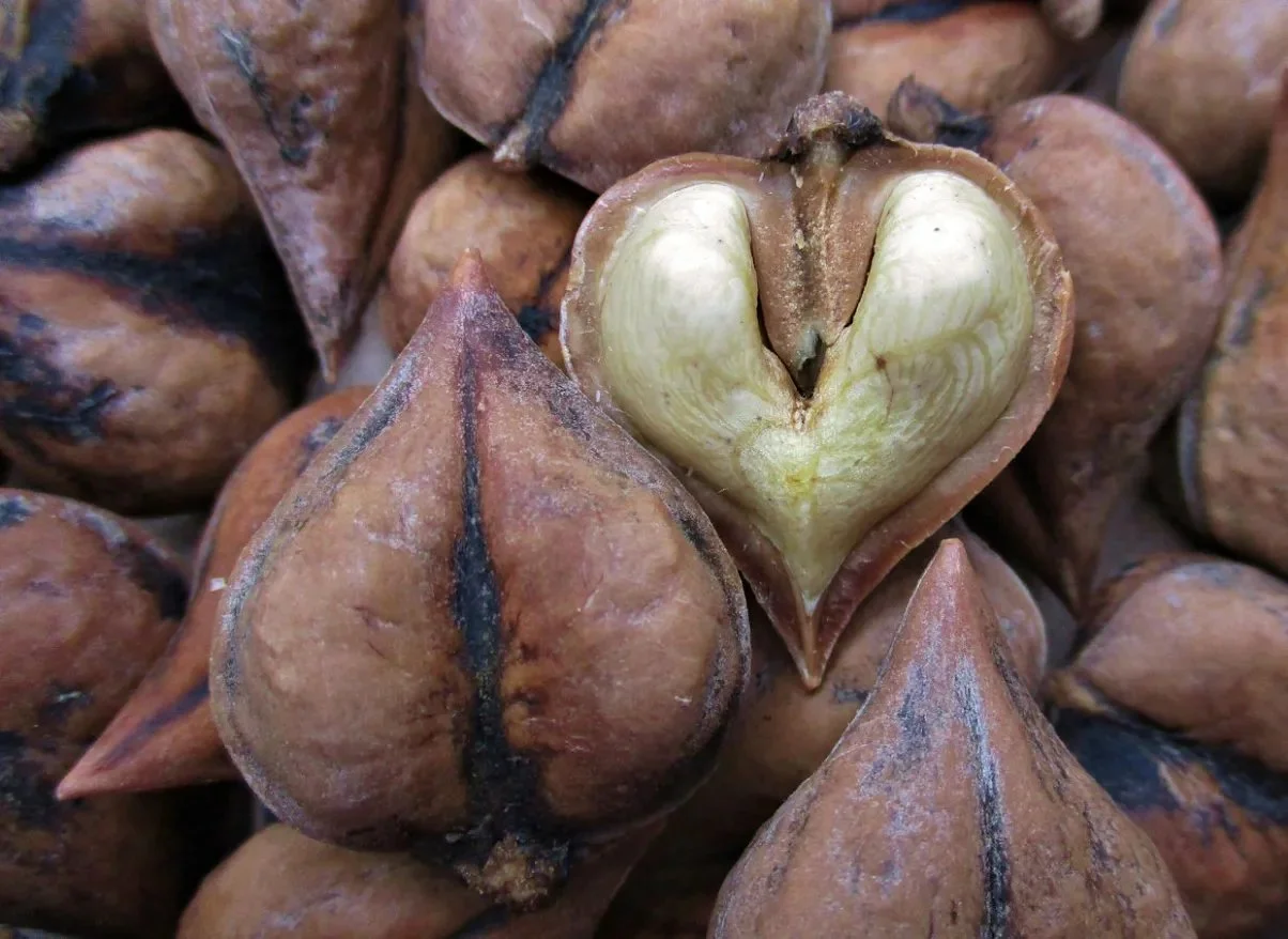 (Juglans ailantifolia var. cordiformis) A heartnut is a walnut that's kinda shaped like a heart. Unlike native (black) walnuts, heartnuts taste good and are easy to crack open. The English walnuts you buy in the store won't grow here, but heartnuts will. We hope.